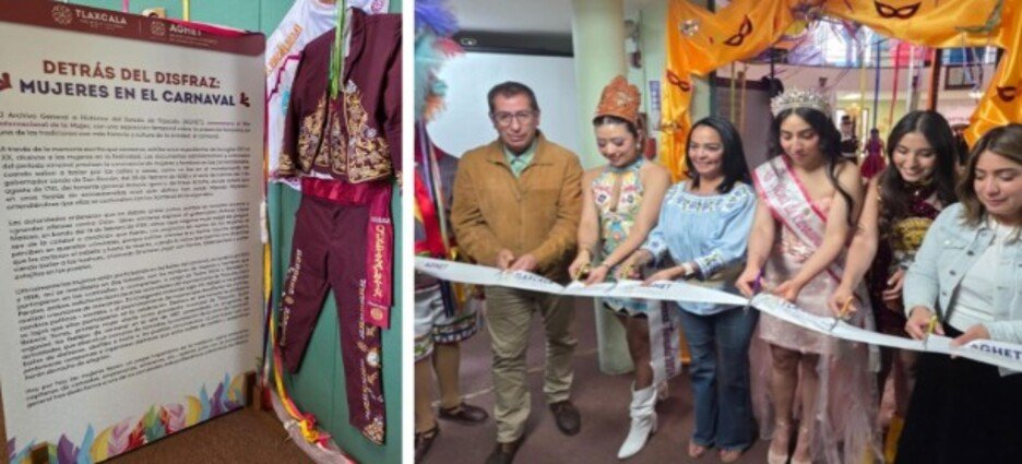 El Archivo General e Histórico del Estado de Tlaxcala (AGHET) inauguró la exposición temporal “Detrás del disfraz: Mujeres en el Carnaval”, una muestra que visibiliza la participación de las mujeres en el carnaval tlaxcalteca y reconoce su papel en la preservación de una de las tradiciones de mayor arraigo en la entidad.